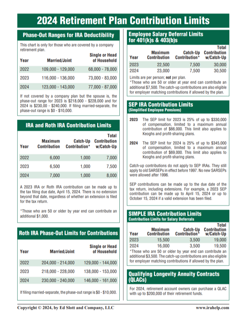 2024 Retirement Plan contribution Limits